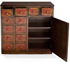 The most common apothecary cabinet material is wood. Distressed multi color metallic material. Build this apothecary media cabinet based on free plans.