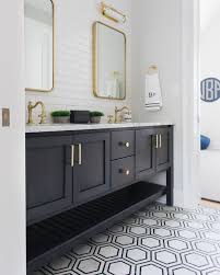 Black bathroom cabinets. Whether you want inspiration for planning a bathroom with black cabinets renovation or are building a designer bathroom from scratch houzz has 20 217 images from the best designers decorators and architects in the country including north star kitchens and sita montgomery interiors. Free shipping on everything at overstock your online bathroom furniture store. Modern light fixtures and minimal faucets give the space a touch of contemporary style.