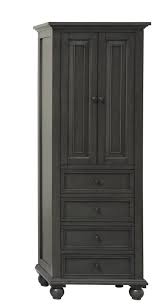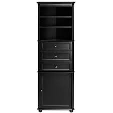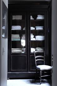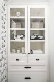Black linen cabinet. Crafted of manufactured wood in a clean white finish this linen cabinet strikes a slender rectangular silhouette featuring crown moldings recessed paneling and black iron hardware. One upper and one lower cabinet offer out of sight storage for toiletries towels and bathroom supplies while two open shelves are great for go to accessories. Amazing gallery of interior design and decorating ideas of black linen cabinets in living rooms dens libraries offices bathrooms laundry mudrooms kitchens by elite interior designers.