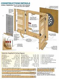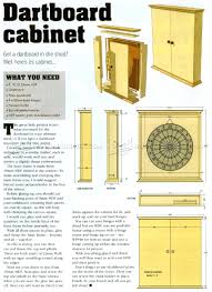 Dartboard cabinet plans. Dartboard cabinet free building plan. Purchasing the dartboard before work begins will help make sure the size of all the components are correct. The basic cabinet relies on tongue and dado joinery reinforced by the decorative corner brackets.