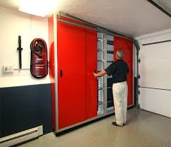 Find garage cabinets storage systems at lowe s today. Steel storage cabinet with doors invie lockable metal cabinet with 4 adjustable shelves great for garage kitchen pantry office patio and laundry room black 4 6 out of 5 stars 8 254 49 254. They will have four doors except the one at left end it will have an upper sliding door because the garage door rail is in the way of door opening.