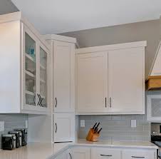 We suggest installing this type of kitchen cabinet molding for functionality as they deflect the light glare while also adding a decorative touch. Cabinet filler in satin white. To pull off this look you may want professional help.