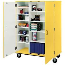 Mobile storage cabinets. Not only can you safely store and lock up your supplies you can move them around with ease in a mobile platform. In stock and ready to ship. Mobile storage cabinets are a great addition to your classroom art room lab or office.