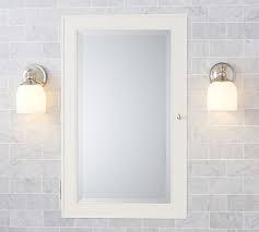 Featuring a beveled mirror design and a white color to match many home interiors this medicine cabinet adds a decorative touch to your space. This upscale recessed medicine cabinet in white is a great way to brighten your decor.